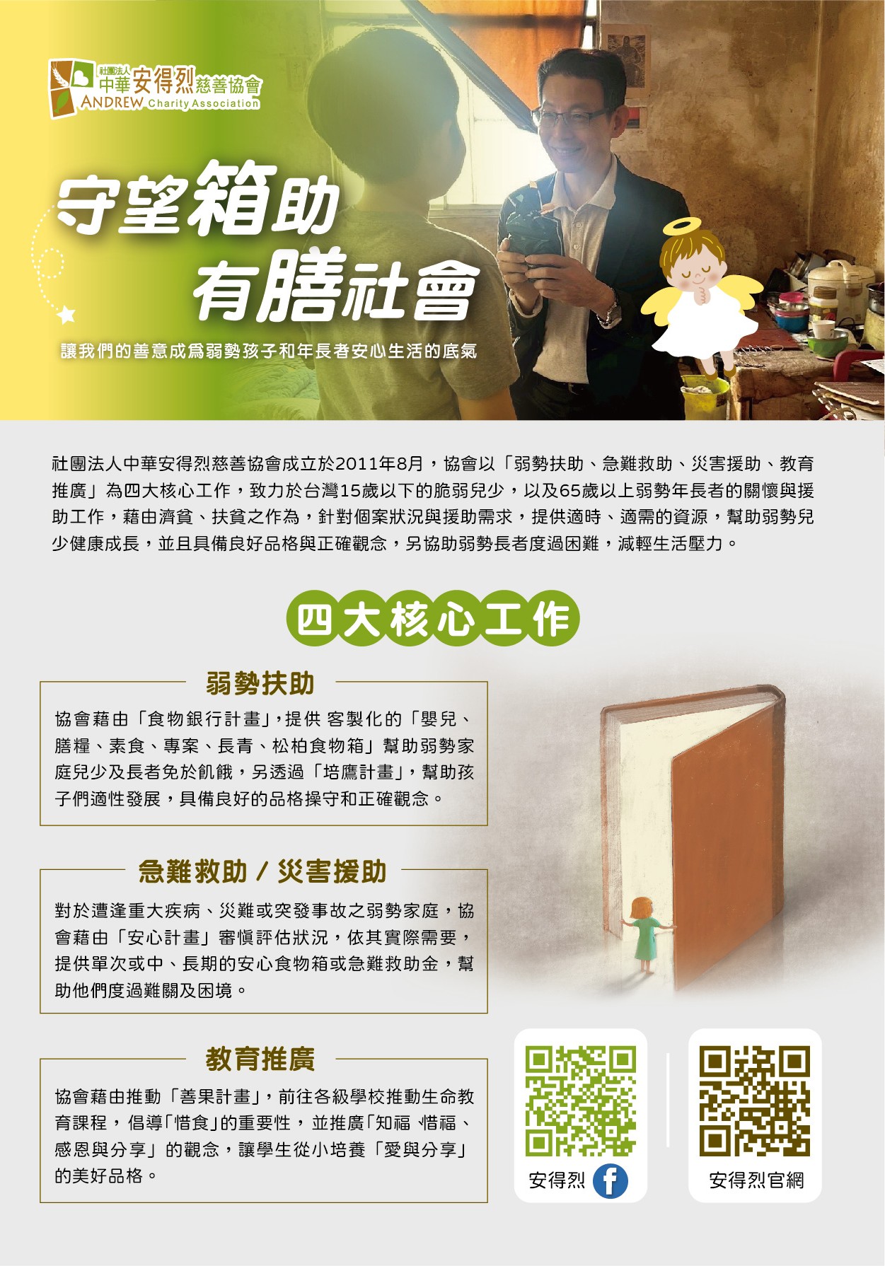 社團法人中華安得烈慈善協會為照顧弱勢家庭學子,擬按月提供「膳糧食物箱」一箱,如說明,請符合資格學生,依限提出申請。
